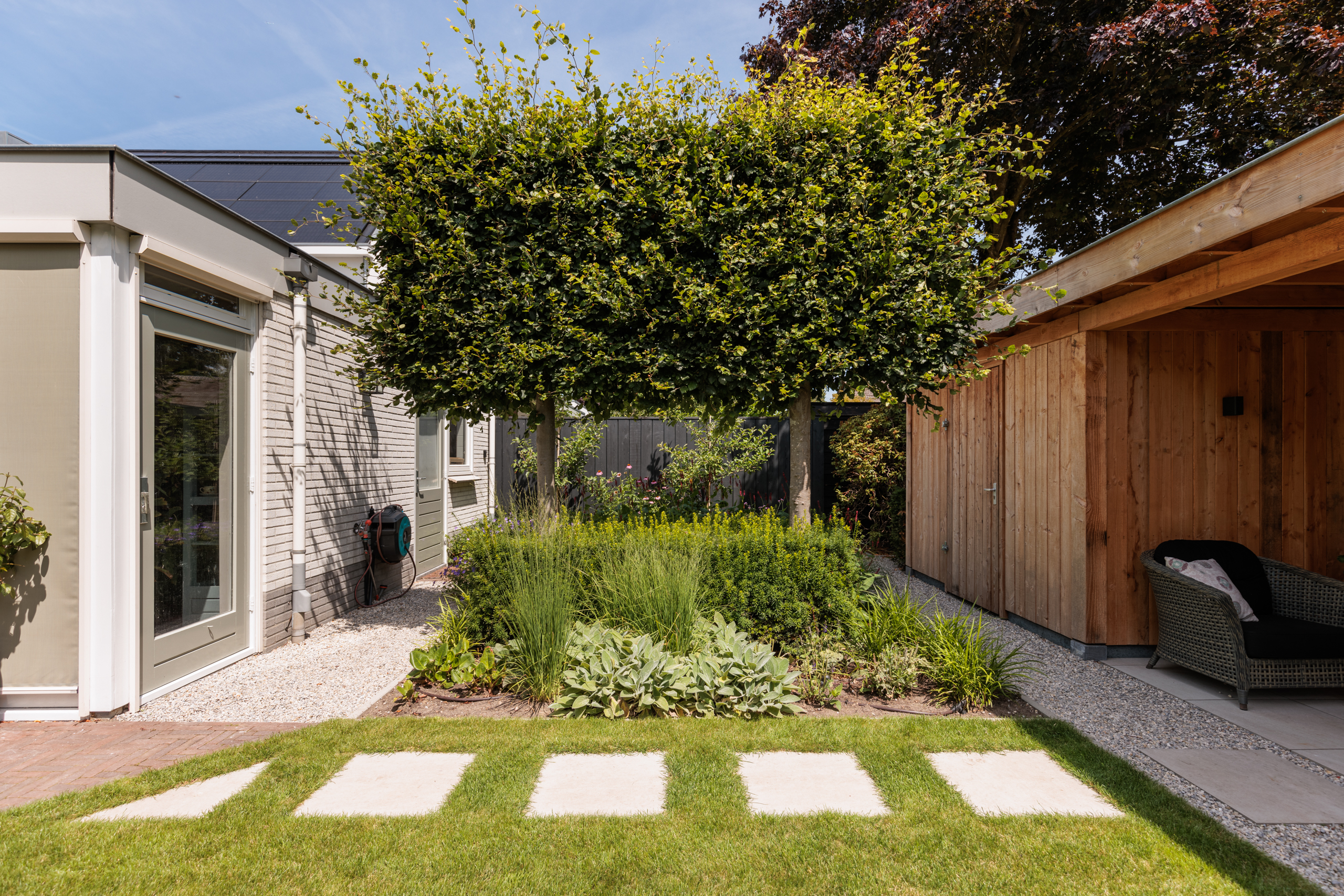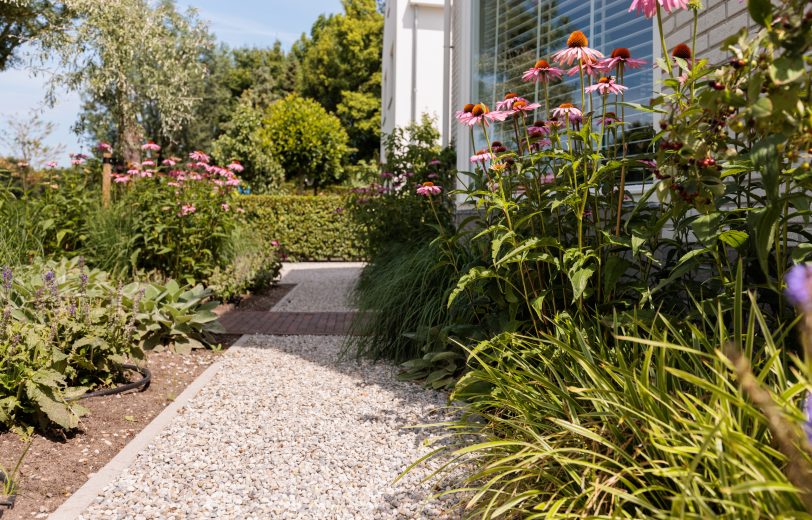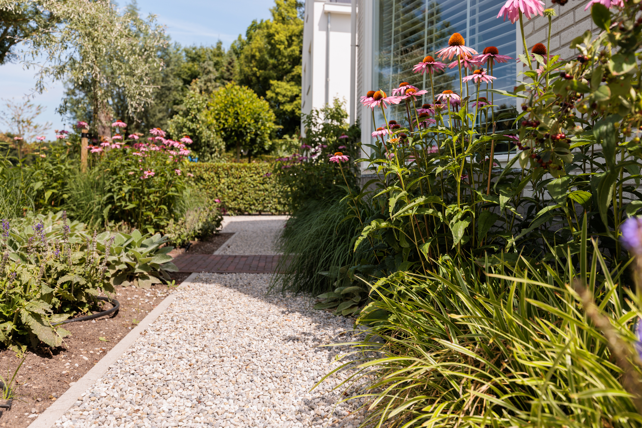 In deze kleurrijke tuin in Veenendaal komen vrolijke vormen en veelzijdige beplanting samen. Met verrassende kleurcombinaties, organisch verwerkte lijnen en functionele zones is elke hoek een ontdekking. Een tuin waarin genieten centraal staat. Speels, fris en uitnodigend.